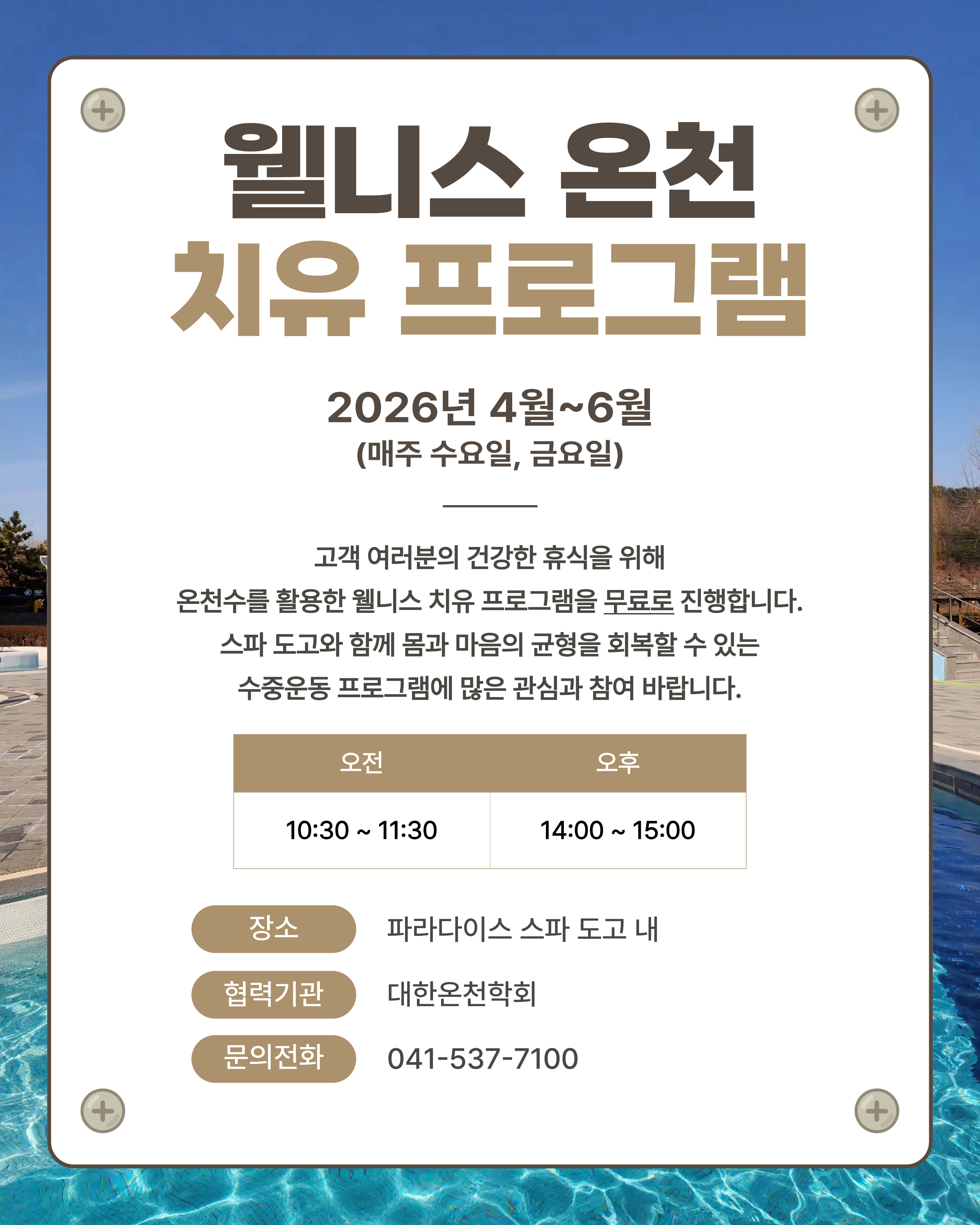 파라다이스 스파 도고의 최근 소식을 신속하게 전달드립니다.